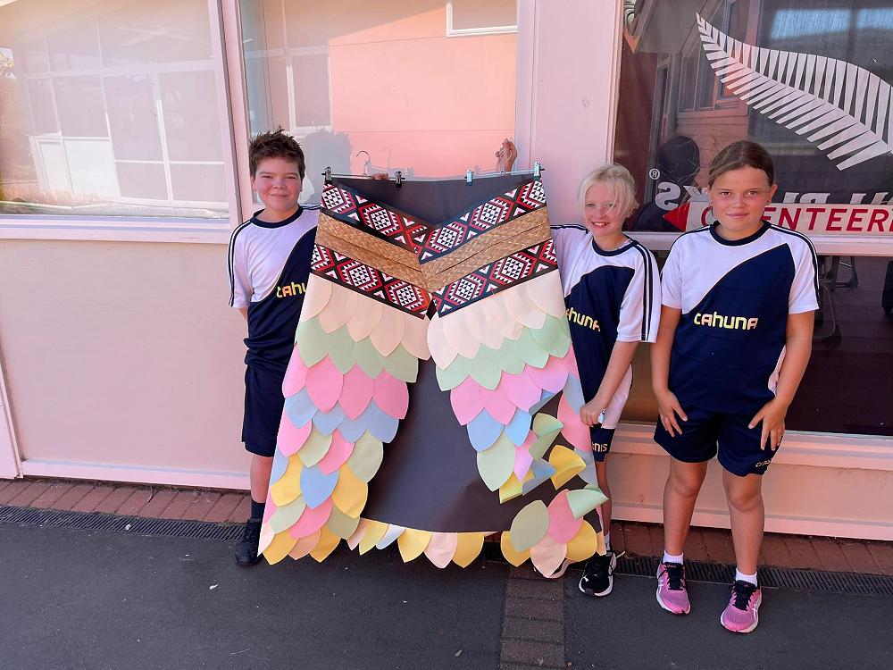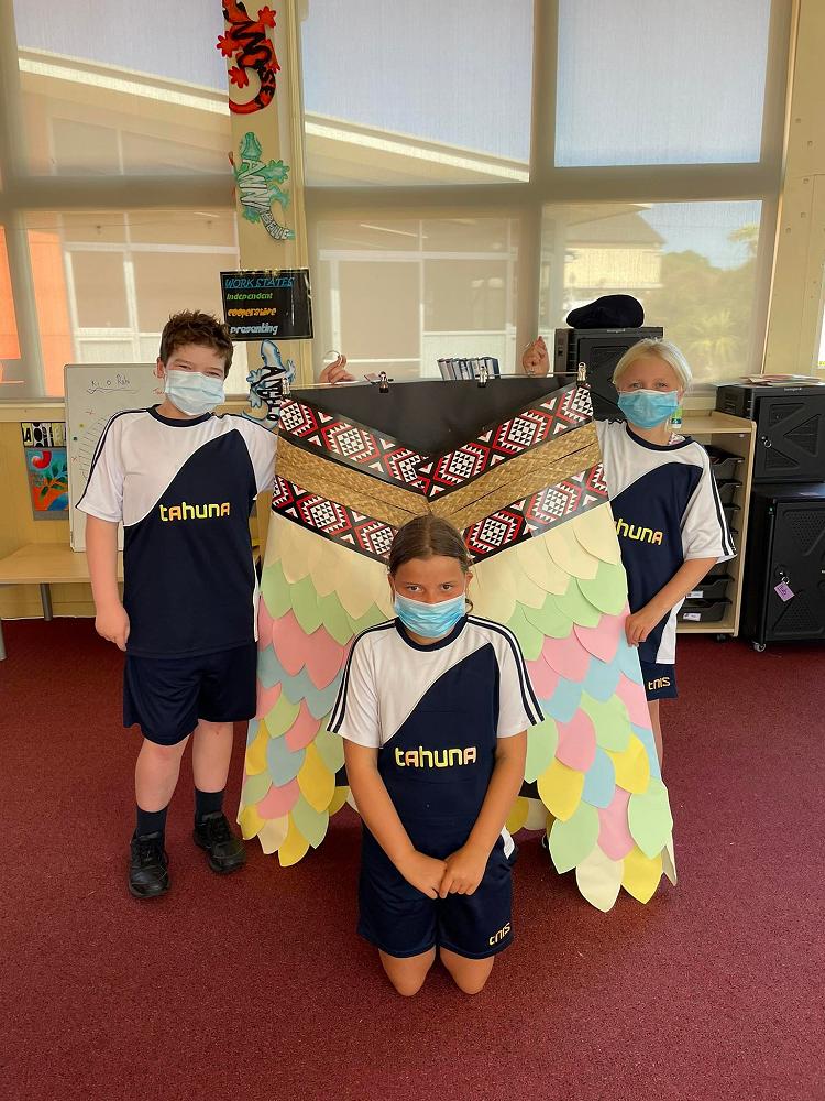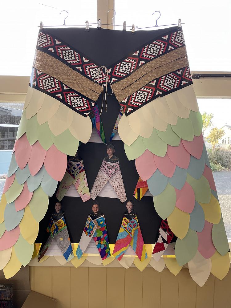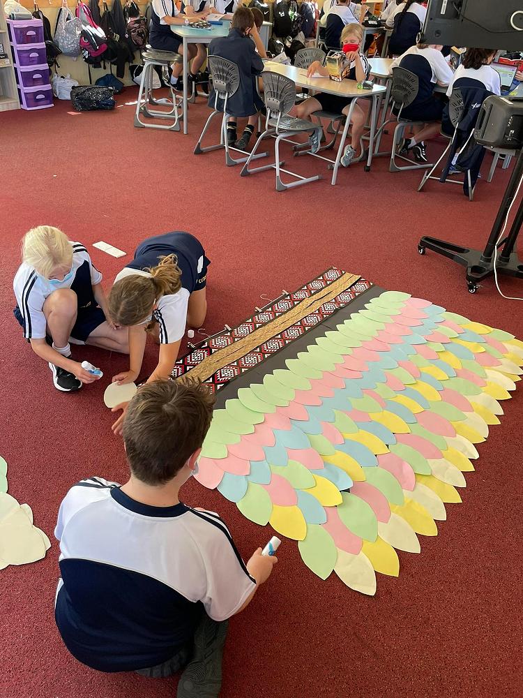 To do so we had to remember, research and ask our families for help. After we completed our mihi we moved onto the actual Korowai. To do this we had to neatly rewrite our mihi in the inside of our Korowai, we then had to decorate and color the outside of our Korowai with lots of time and effort to make them stand out. We also had a giant class Korowai made and were very lucky to have a few pupils from 19a to spend their time cutting and sticking on some colorful feathers. Thank you to Belle, Callan, and Nikiya for helping with this. I'm sure the teachers were very impressed with them!