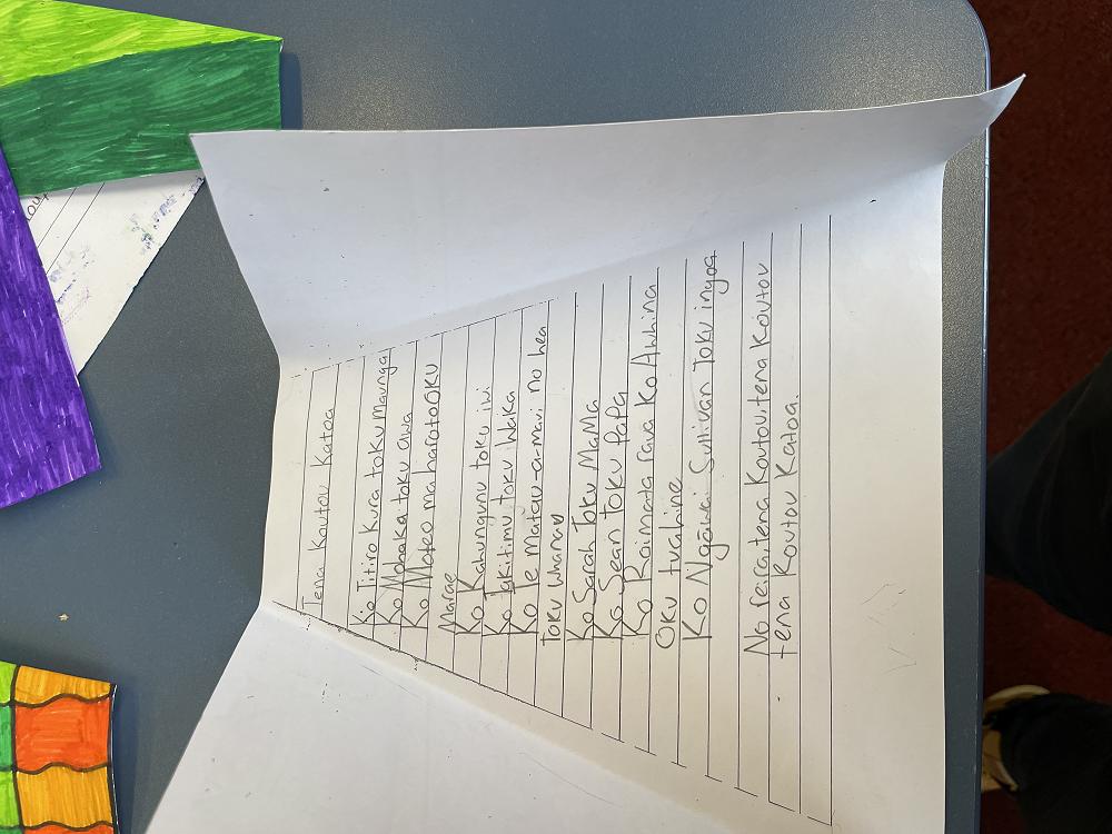 Over the last week or so we have been doing our korowai project which involved being artistic, researching and of course having fun while doing it. For our draft we wrote our mihi.