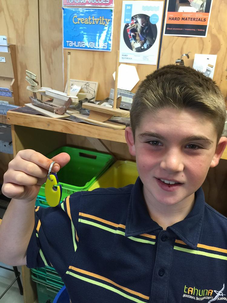 After using the Design Process to draw their own unique key ring, students laminated acrylic plastic to give strength to the product and provide a range of colours.