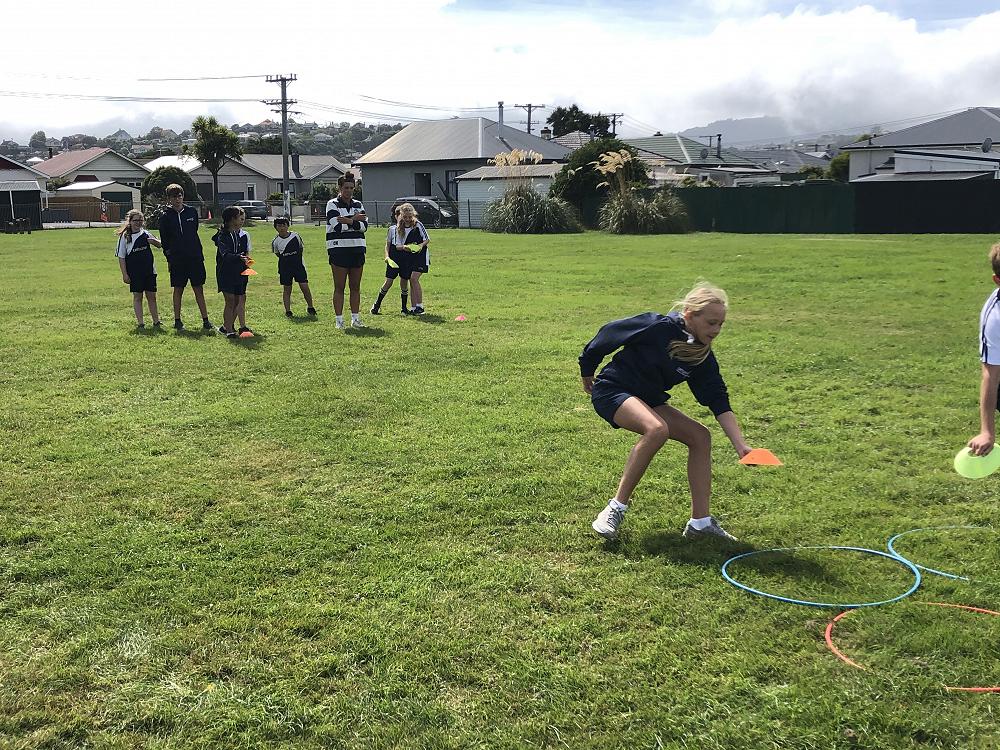 On Monday we had around 16 Otago Girls coaches come teach Team 1 some new and fun games to play. We are very lucky that these girls have offered to do this for our school, we get to have them for three Monday’s and we are all looking forward to them coming back. In my group we played, Naughts and Crosses, Paper Scissors Rock, Octopus and link tag. My favourite game to play was Paper Scissors Rock because you never know what could happen. I think we are all very excited for these girls to come back because it was so fun and exciting learning new games.