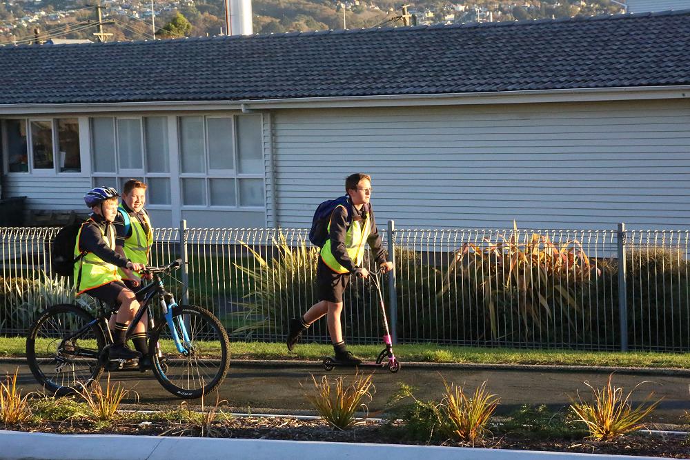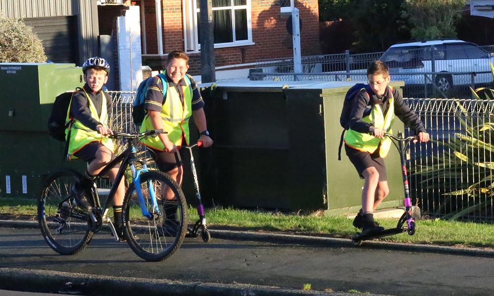 All Tahuna students who ride their bikes, scooters or skateboards to school must wear High Vis vests which makes them highly visible, especially during the darker mornings and early evenings. High Vis Vests are available to all students who want them.