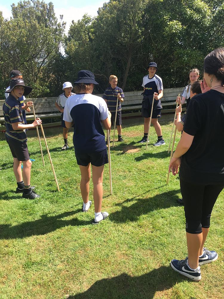 We had a great time learning some traditional games. Ana Halalilo-Rouvi assisted with these and had the students laughing and excited throughout the session. We made rakau (sticks) in the workshop at school and brought these out to the marae to play more traditional games.