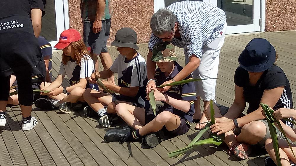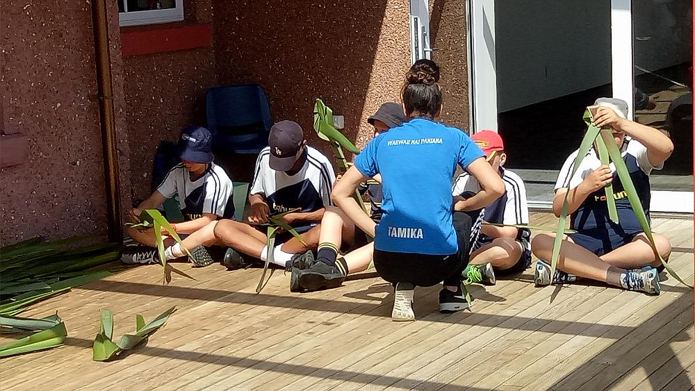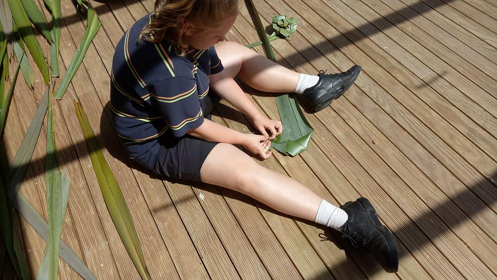 Students were taught how to make putiputi (flowers) with harekeke (flax). The tradition in Maori is to give away your first harekeke creation and because our students had all made something with harekeke before, they were able to take these home.