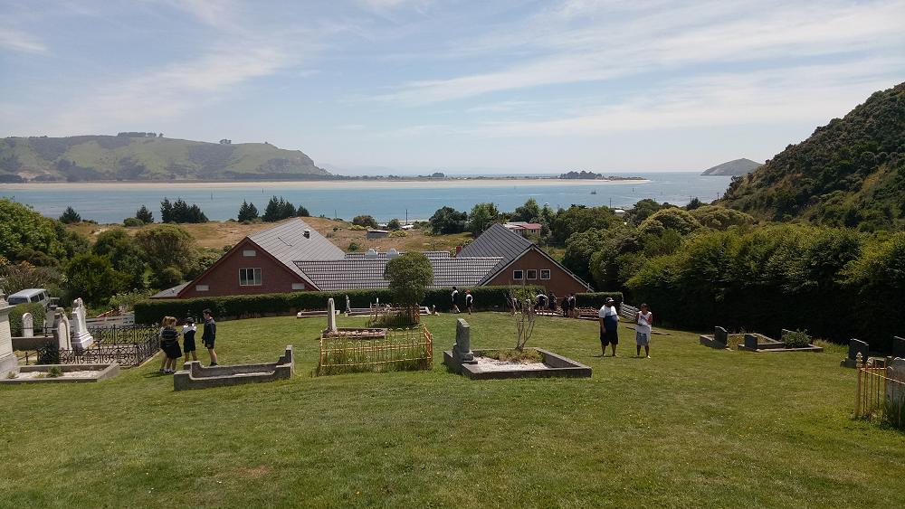 The Urupa (cemetery) is behind Otakou Marae. It has a beautiful view across the harbour and peninsula. Steeped in rich history it was a wonderful experience to look through the head stones and see the family connections.