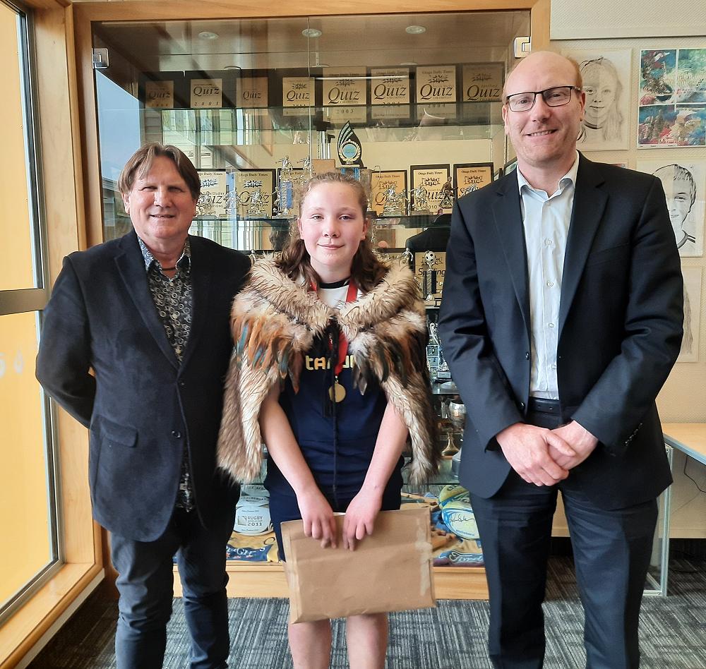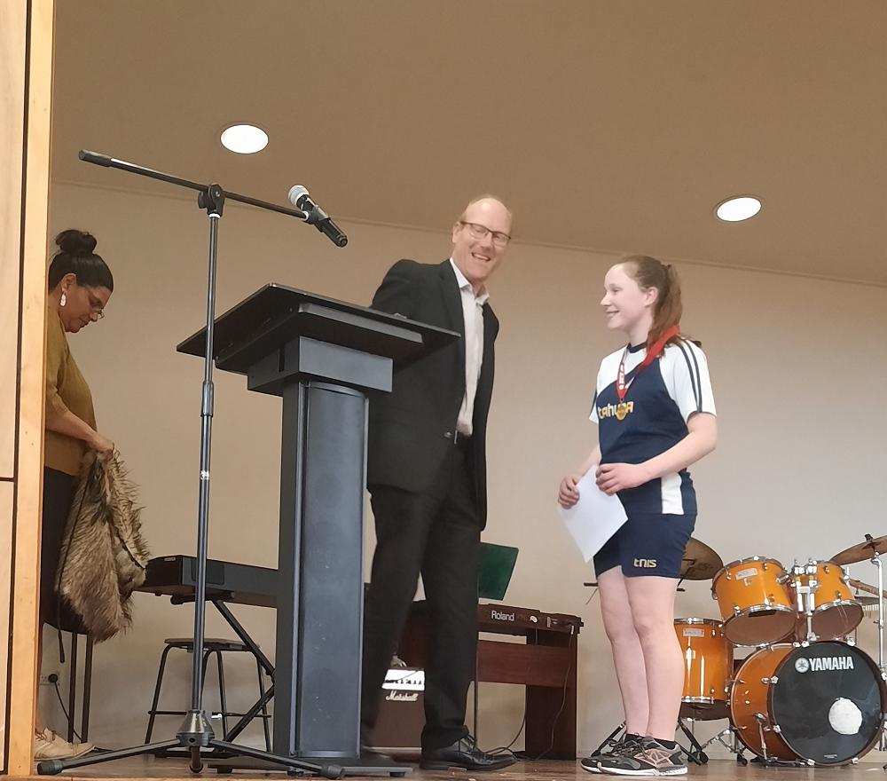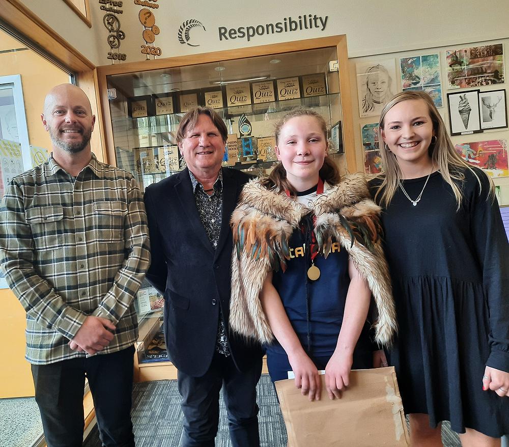 At our end of term assembly, not only did Sophia receive her Gold Citizenship badge, but was announced as our well deserved recipient this year, by Allen Anderson, Manager of the South Dunedin Westpac Bank.