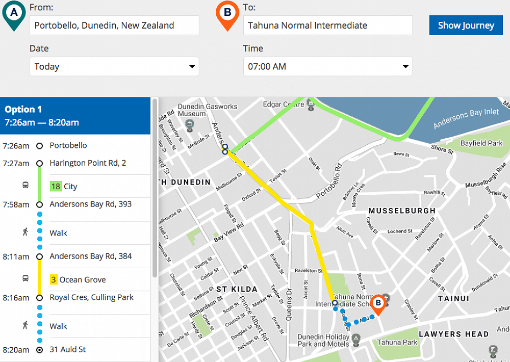 If you are going to use the following public bus service as recommended by the ORC as detailed below please let the school know on office@tahuna.school.nz and we will have a teacher at the transfer and departures stops for the first 2 -3 days to ensure the children using these buses know what they are doing and are safe.
