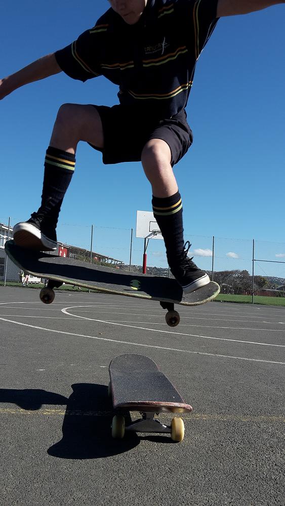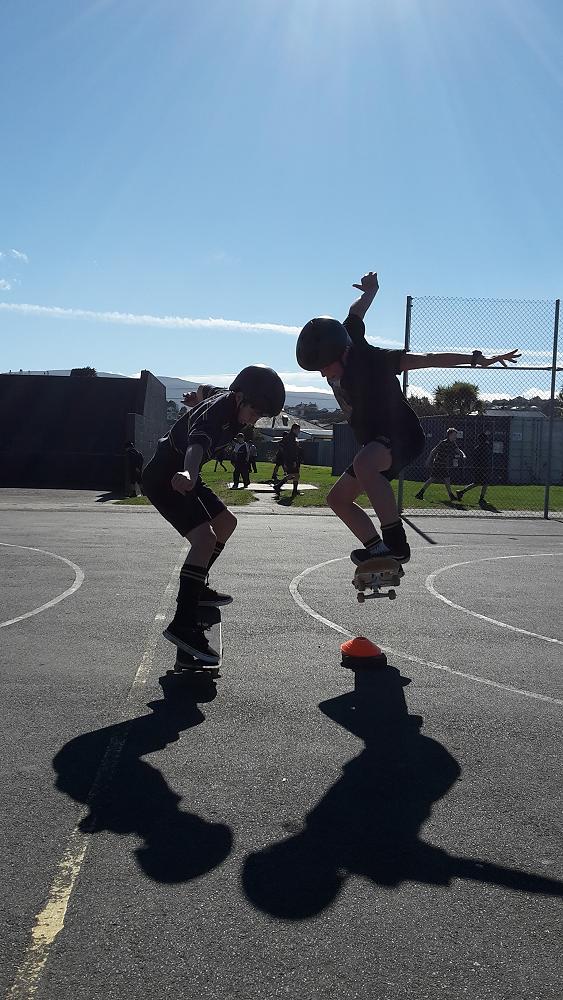 One of the many activities on offer during school time at Tahuna is skateboarding and scootering, where riders with a wide range of abilities develop their skills and share their love of riding together.