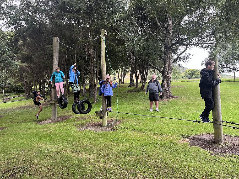 After that we got into our activity groups and did 4 rotations. My first rotation was on the confidence course with my Grandad, we did the confidence course 2 times throughout then swung on the ropes and the tyre swings just for fun. For our next rotation we were going on the grass skis (you don’t actually get to slide down the hill on special skis which I found a bit boring) then we played football but at the end we weren’t actually playing and it was mayhem with people everywhere. Evie scored 3 goals.