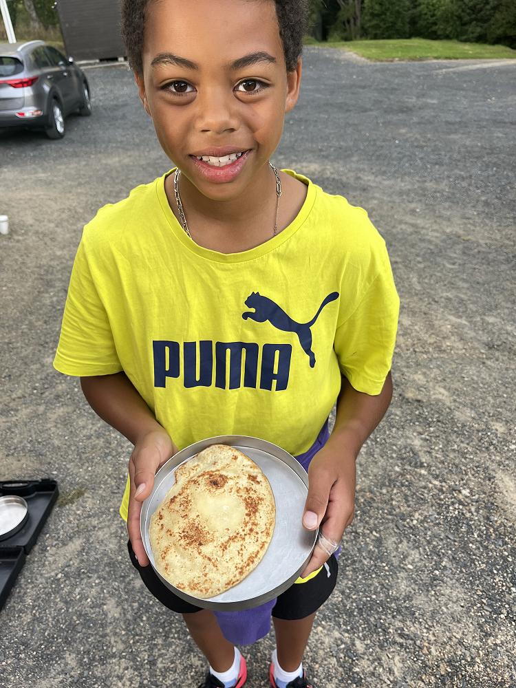 At camp I woke up and I was freezing. I started reading my book for about 30 minutes until we had to get up and get dressed for the day. Myself, Eliza and Elizabeth got together to make some pancakes for breakfast and we made some as big as the pan. Next we all got together inside of the hall because it was raining outside so we played some word games together for a while and my group got a lolly.