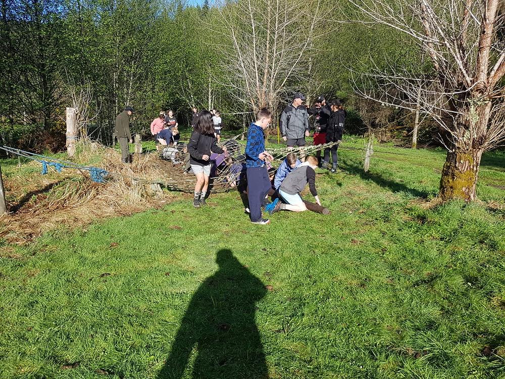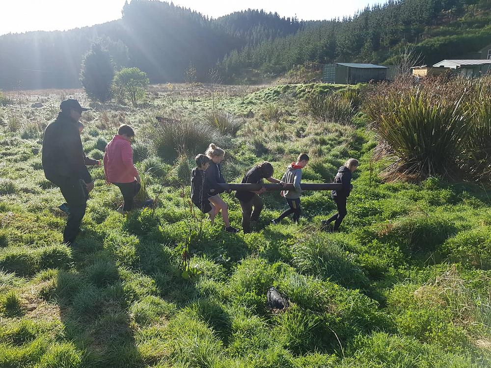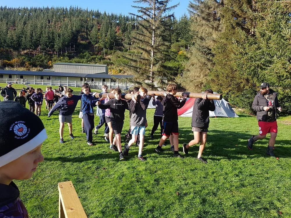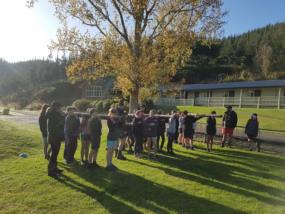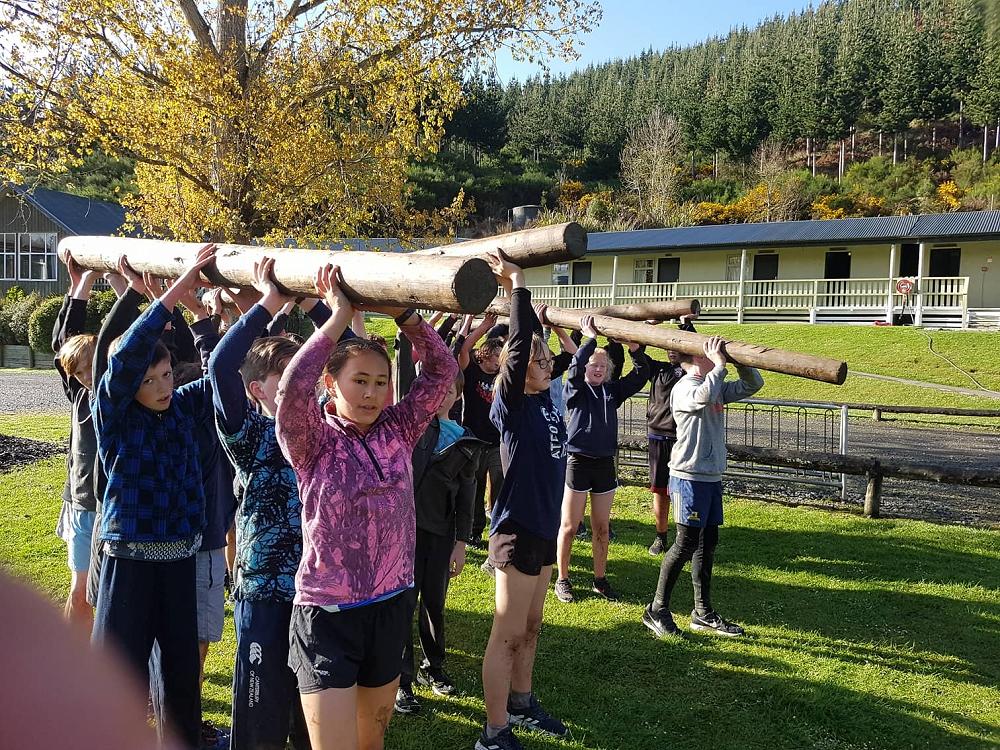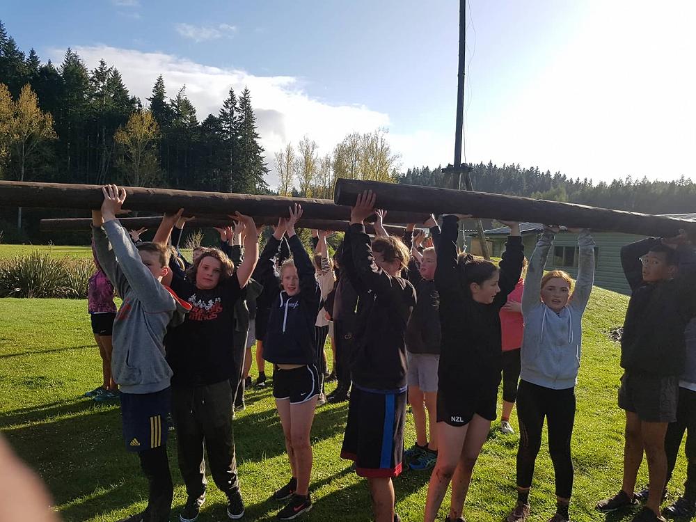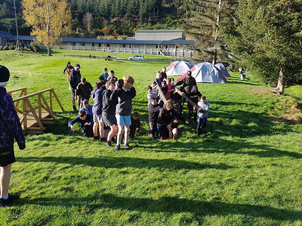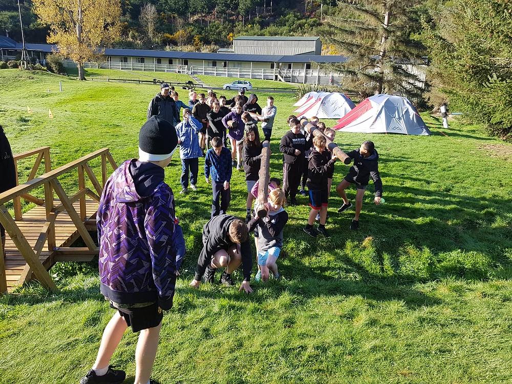 “Rrrgggggnnnnnn” went the siren it was 7:30 in the morning when we all awoke, we all exited our tents and were told that we had 5 minutes to get changed and be ready for what was to come. We all went and got changed and then we sprinted back to the flagpole to be put in our groups for the Gut Buster. When we were at the flagpole there were 4 damp icy logs on the ground. Matua (Our teacher) then told us our group number and where to stand. I was in group 4 with six other members. When we picked up the logs my hands felt like they were gonna freeze in a matter of seconds. All of the class was then told to drop the ice cold logs slowly on the wet cold grass and follow Matua onto The Gut Buster track. The first of three obstacles was the ditch, where you would have to hold your team's log and walk/ run over a small ditch. The next obstacle was the Cargo Net, after running through the ditch you would have to take your team's log under the Cargo net with you and also the rest of your team under; you could only start to run again after all your team had passed the net. The last obstacle was a large ditch that was full of mud that your shoes got stuck in and after that it was finally 1 of the 3 laps. All the teams then got ready with their logs and started to run. There were also punishments for cheating and having too many people not holding the logs. My team was the first to get out of the Cargo net but was the first one to get punished so it was basically all over. Although my team came last, in the end it was an enjoyable experience for me and (some) of the class.