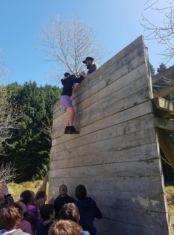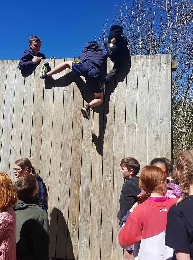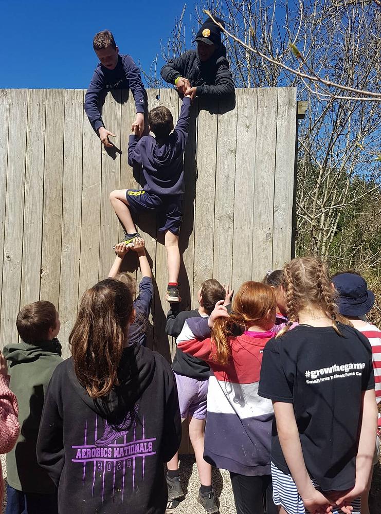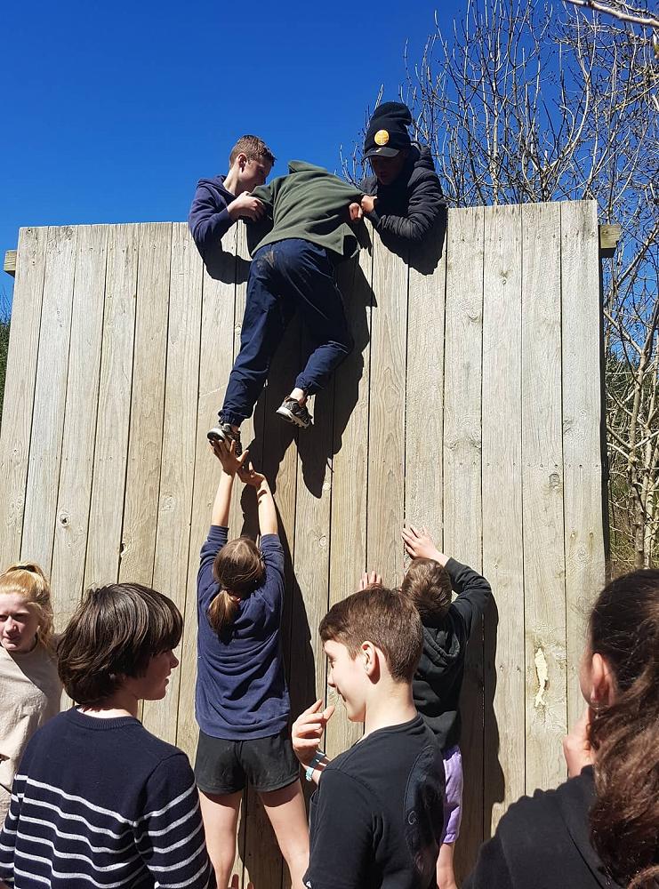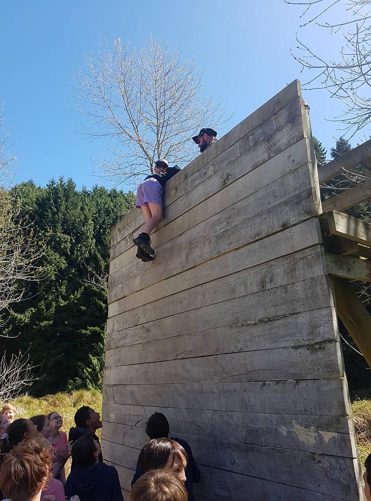 Near the end of the camp the class gathered together for the high wall challenge. The point of the high walls is to work as a team to get as many people as you can over them, it seemed impossible at first but we began to develop strategies. The first wall was just above head high and a few people could get over by themselves. The second wall was much higher and Troy had to pull everyone over while some people at the ground boosted others. The third wall looked impossible at that point but the combined force of two adults at the top and boosters at the bottom got us over quickly. All in all, the high walls were lots of fun and a really good team building exercise, many people went further than they expected, but everyone had a go.