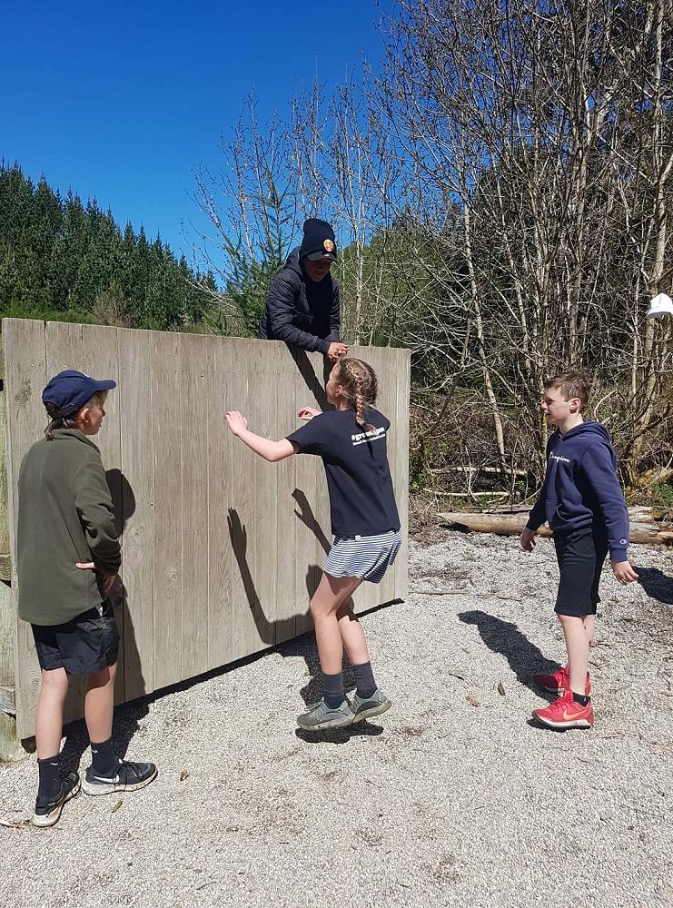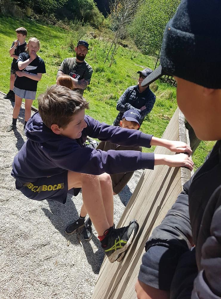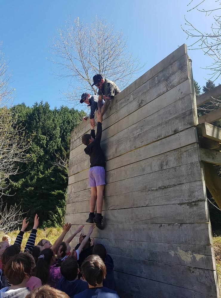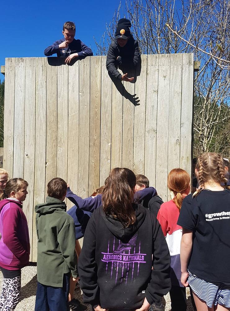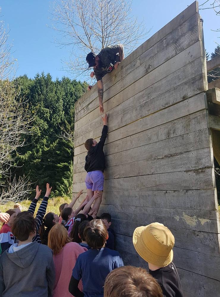 Near the end of the camp the class gathered together for the high wall challenge. The point of the high walls is to work as a team to get as many people as you can over them, it seemed impossible at first but we began to develop strategies. The first wall was just above head high and a few people could get over by themselves. The second wall was much higher and Troy had to pull everyone over while some people at the ground boosted others. The third wall looked impossible at that point but the combined force of two adults at the top and boosters at the bottom got us over quickly. All in all, the high walls were lots of fun and a really good team building exercise, many people went further than they expected, but everyone had a go.