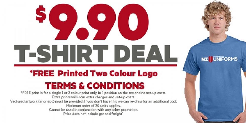 A minimum order of 20 tees or more is required to get the special price of $9.90 +gst ($11.39) any combination of colours can be ordered as part of this special deal.