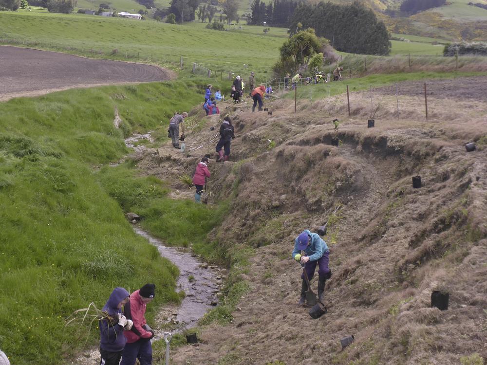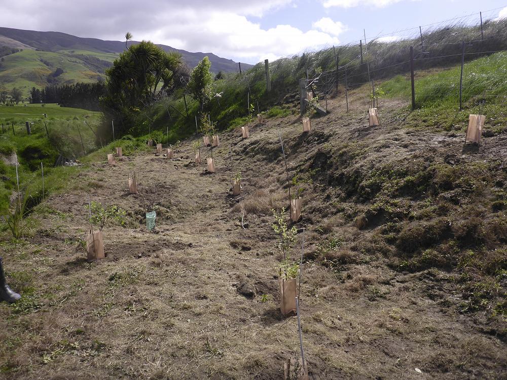 Planting plays an important part because it stabilises and benefits the land by protecting riparian systems from livestock by discouraging cattle and sheep from going near the waterways. Riparian planting also dilutes and filters the animal waste that enters the waterways allowing cleaner water to run through the streams and rivers and into our lakes and oceans with less pollution.