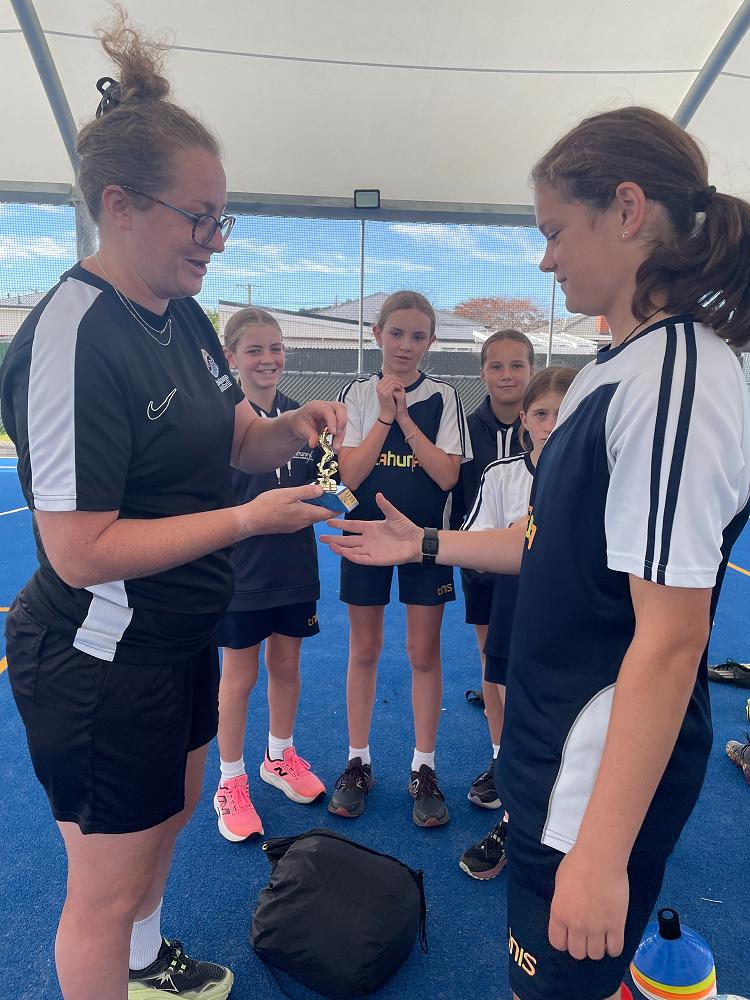 Congratulations! Tahuna girls win the final in Year 9 & 10 Secondary Schools Futsal Tournament and also to Charlotte Evans who recieved a trophy for Golden Boot.