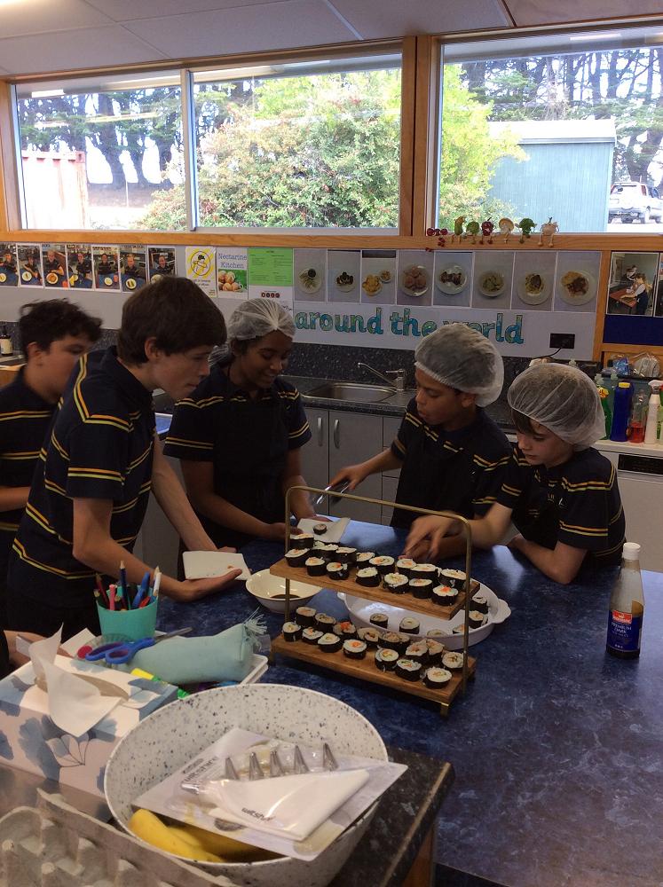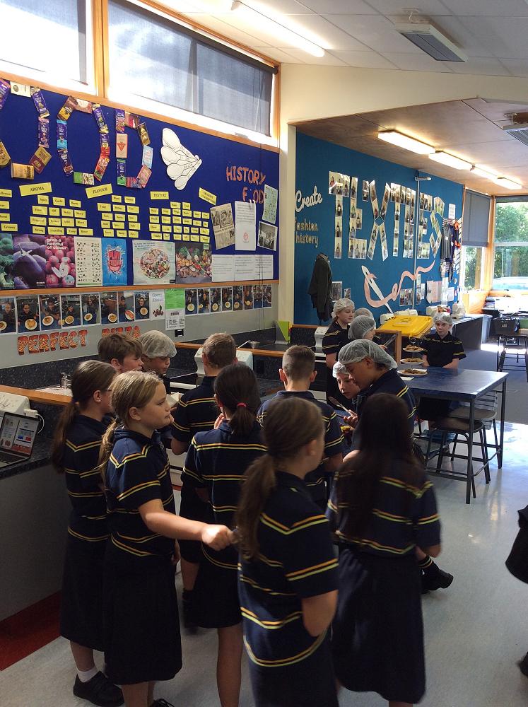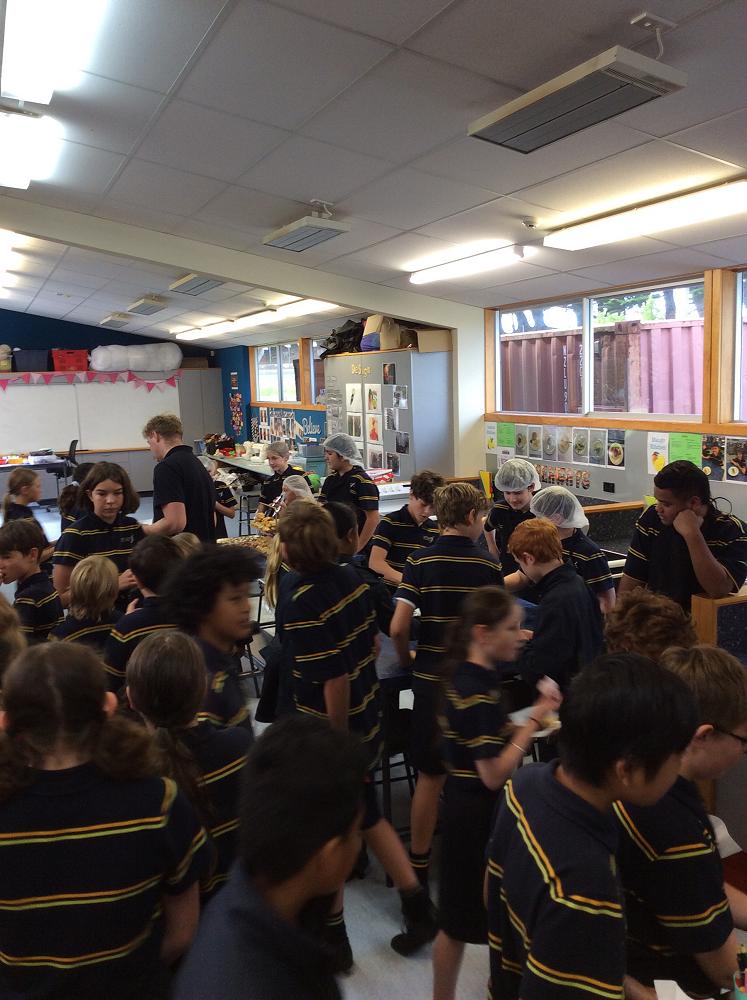 Food Technology: Students have been really engaged in their kitchen groups designing and then trialling finger food products. These products were then made in bulk to cater for an end of term team celebration with much excitement! Please ask students to show you their learning journals.