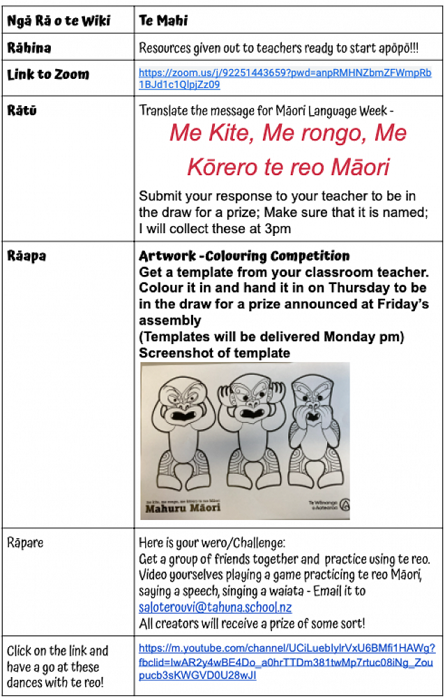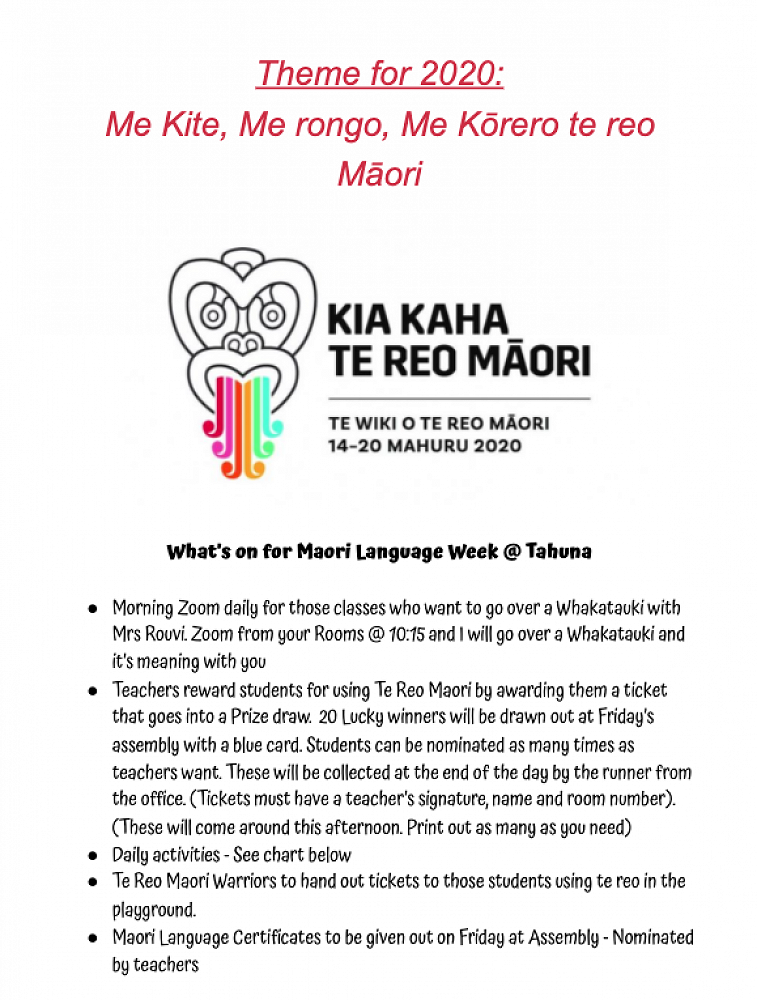 The students and teachers of Tahuna had a range of activities to participate in over Te Wiki o Te Reo Māori.